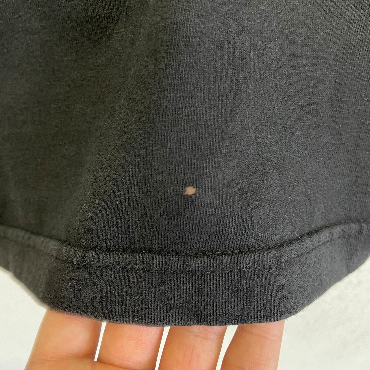 前身ごろ右脇腹辺り、前身ごろ裾、左袖にピンホールがあります。