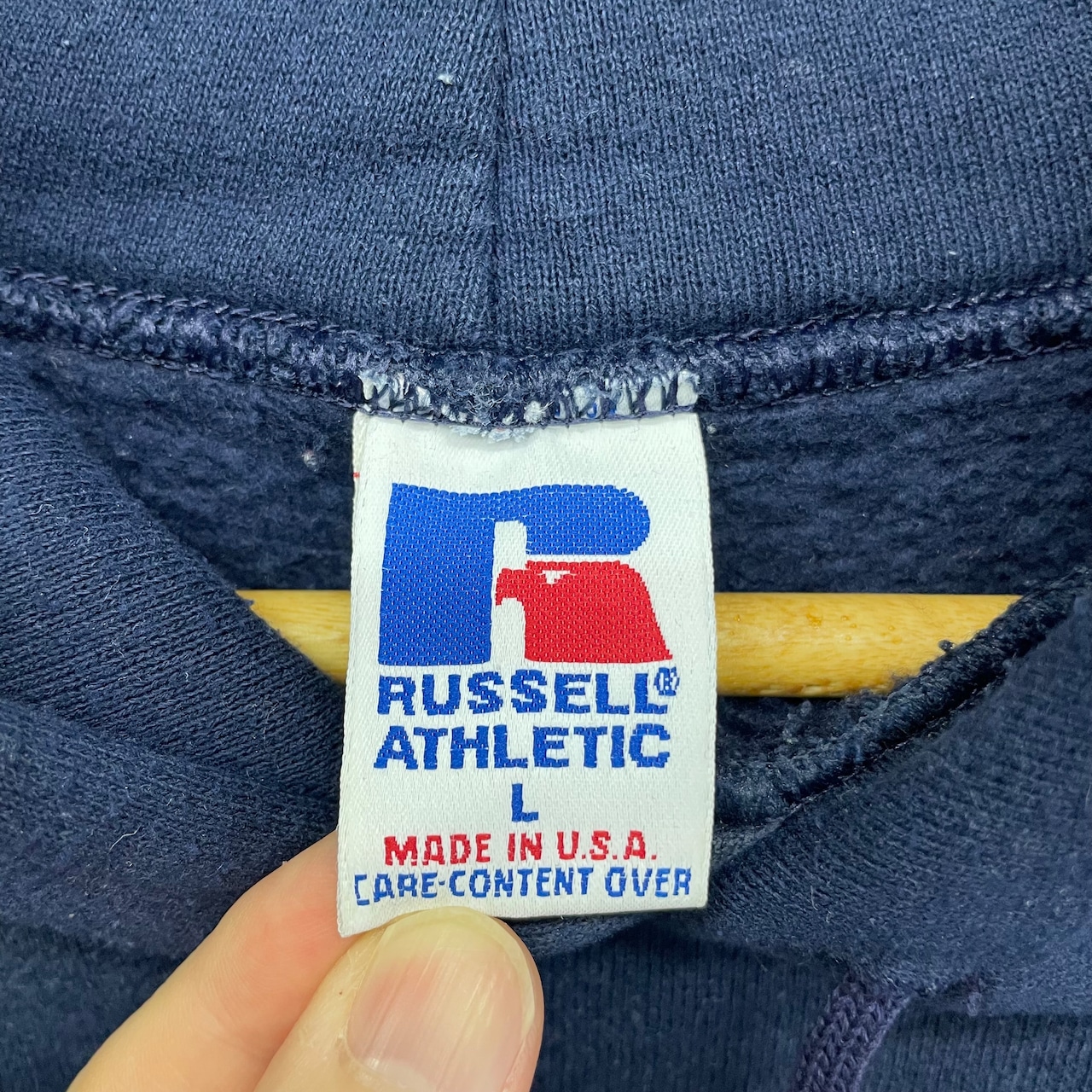 90's RUSSELL ATHLETIC NAVY Hoodie made in USA size/L ラッセルアスレチック ネイビー フーディー