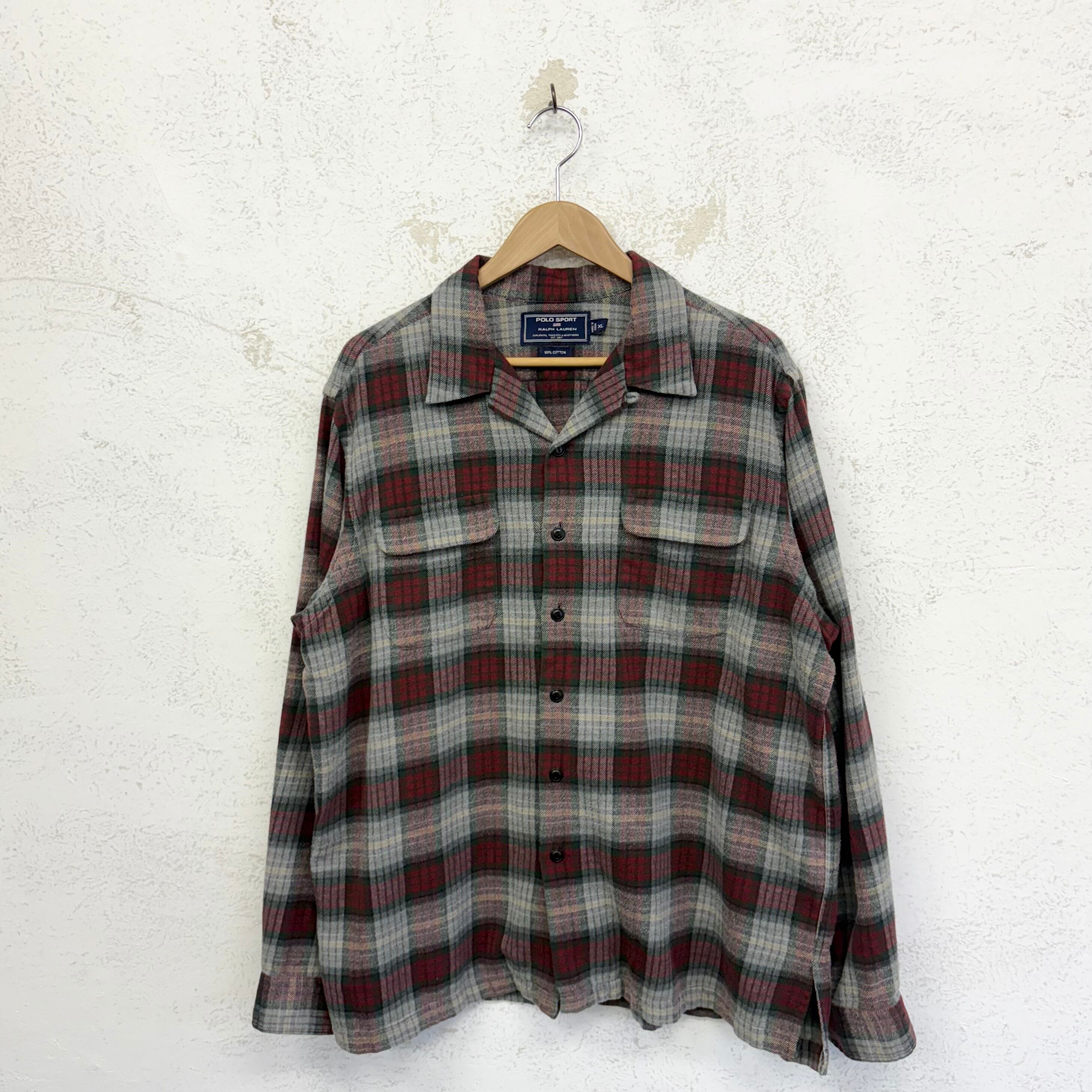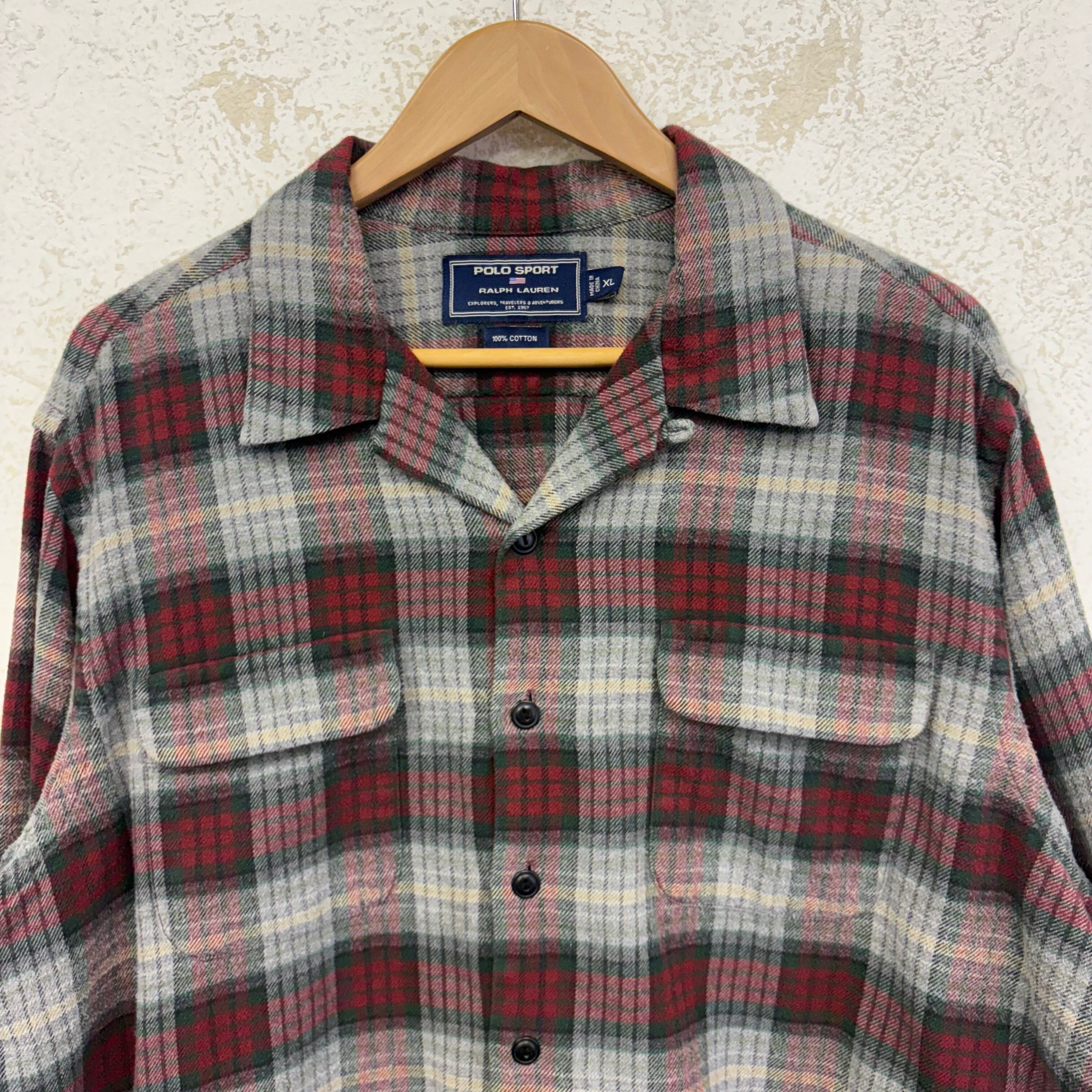 90's POLO SPORT open collar shirt "flannel" size/XL ポロスポーツ ネルシャツ 開襟