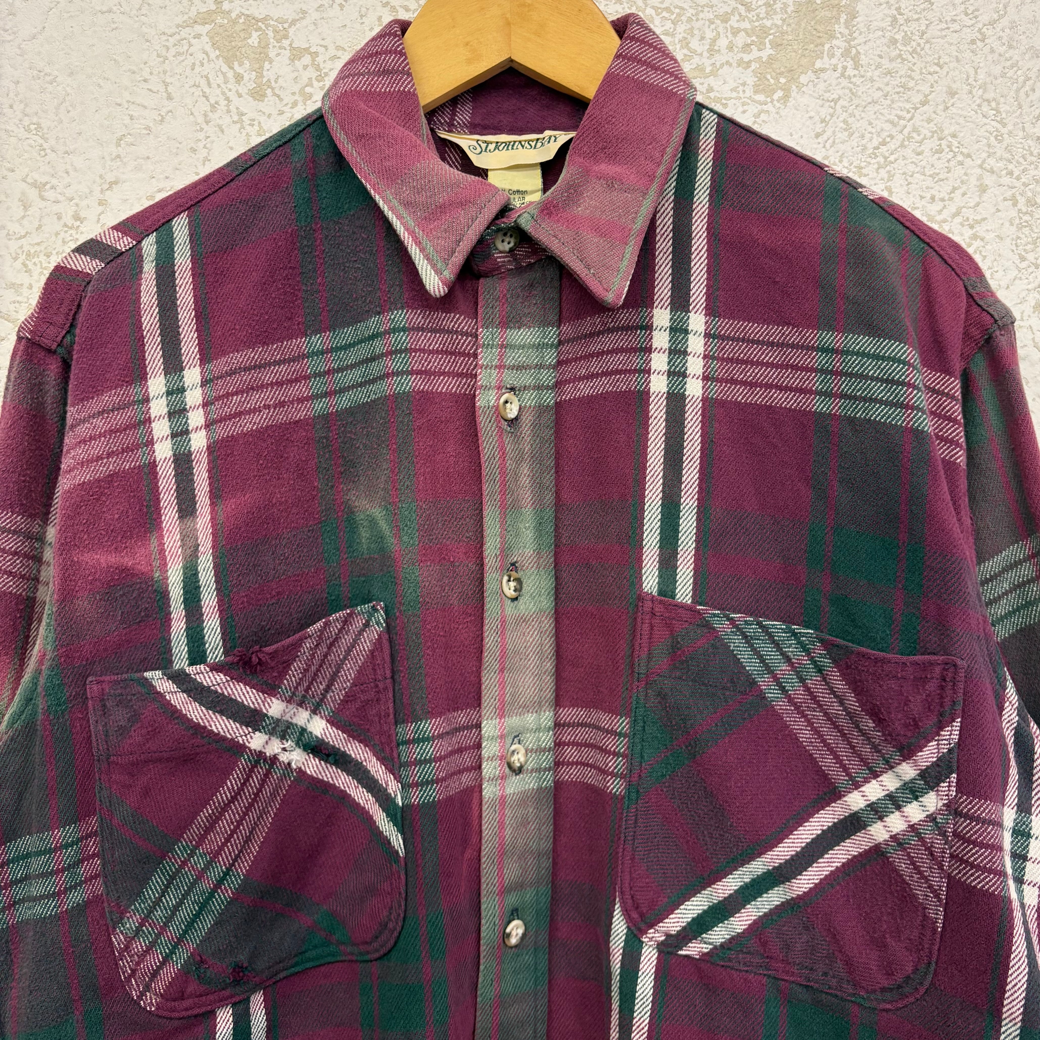-90's ST JOHNS'BAY flannel shirts made in USA size/M セントジョンズベイ ネルシャツ アメリカ製