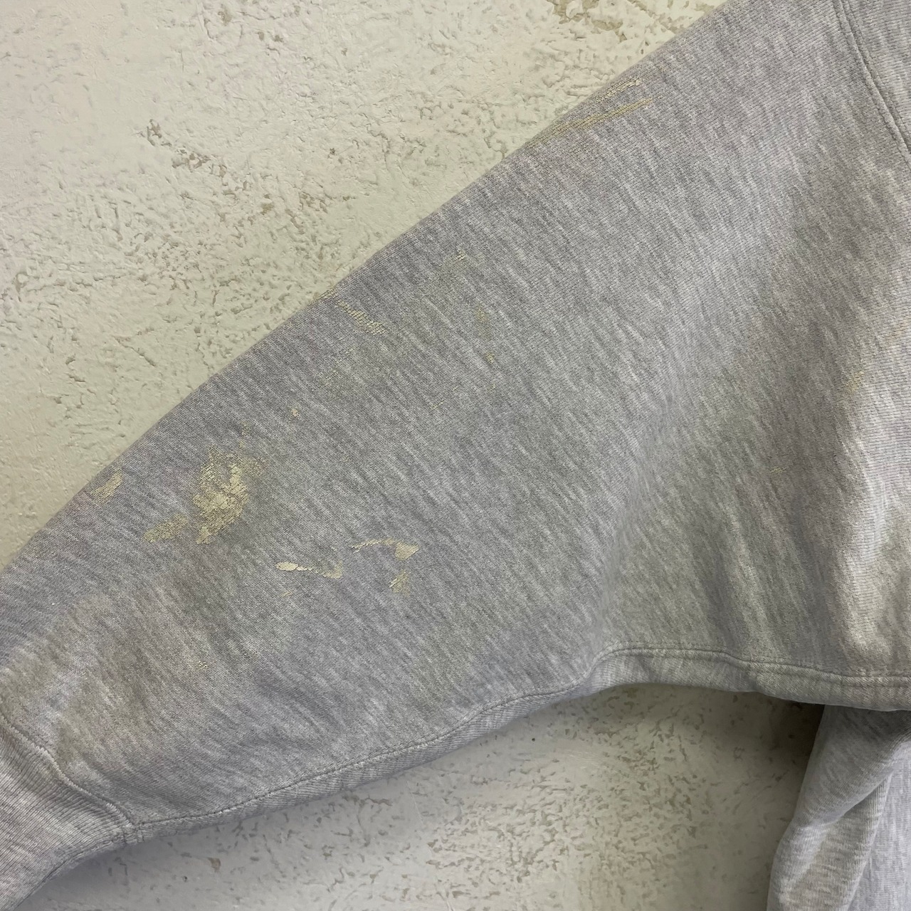 前身ごろ首元、中央部、両袖、後身ごろ裾にペンキ汚れがあります。(画像7枚目〜14枚目でご確認下さい)