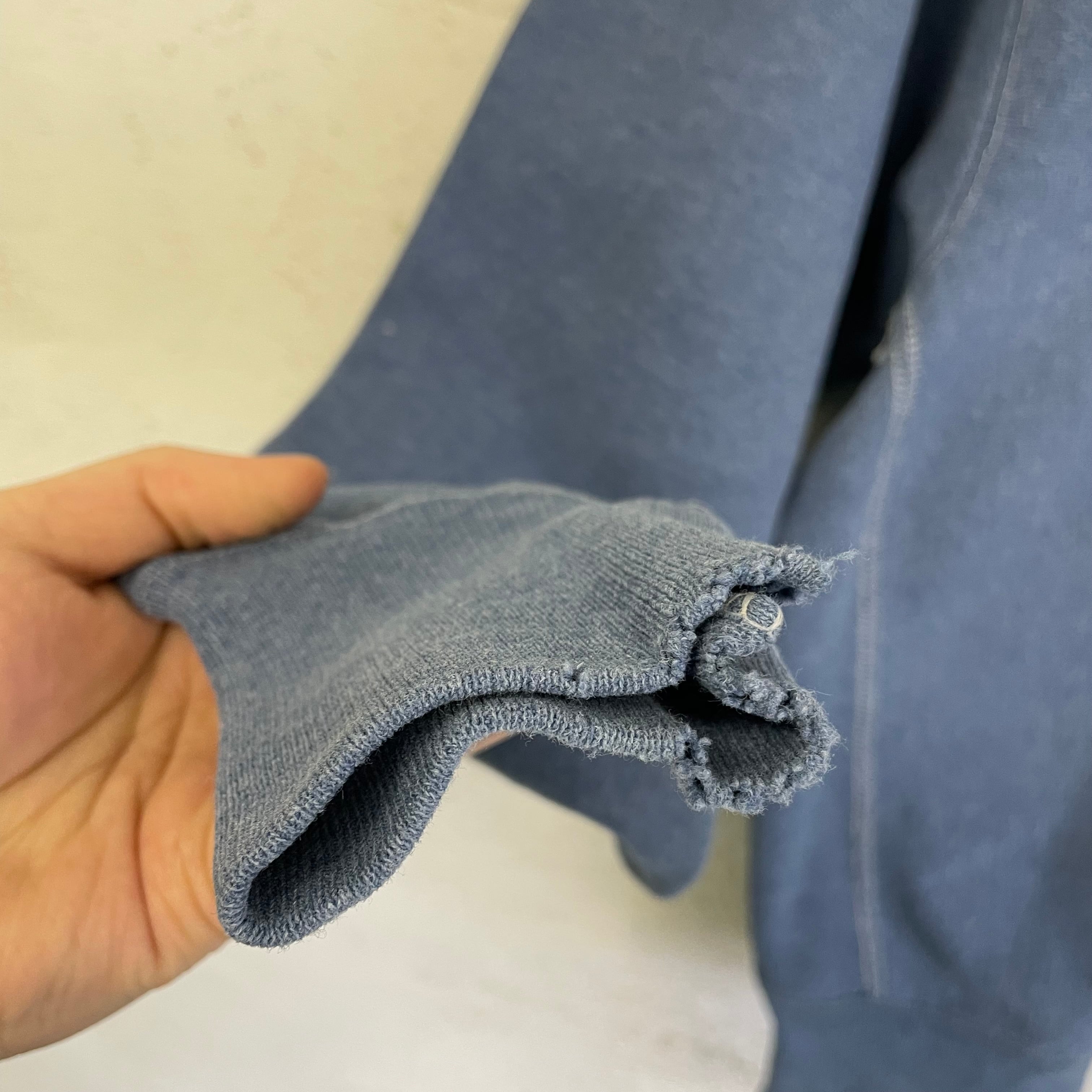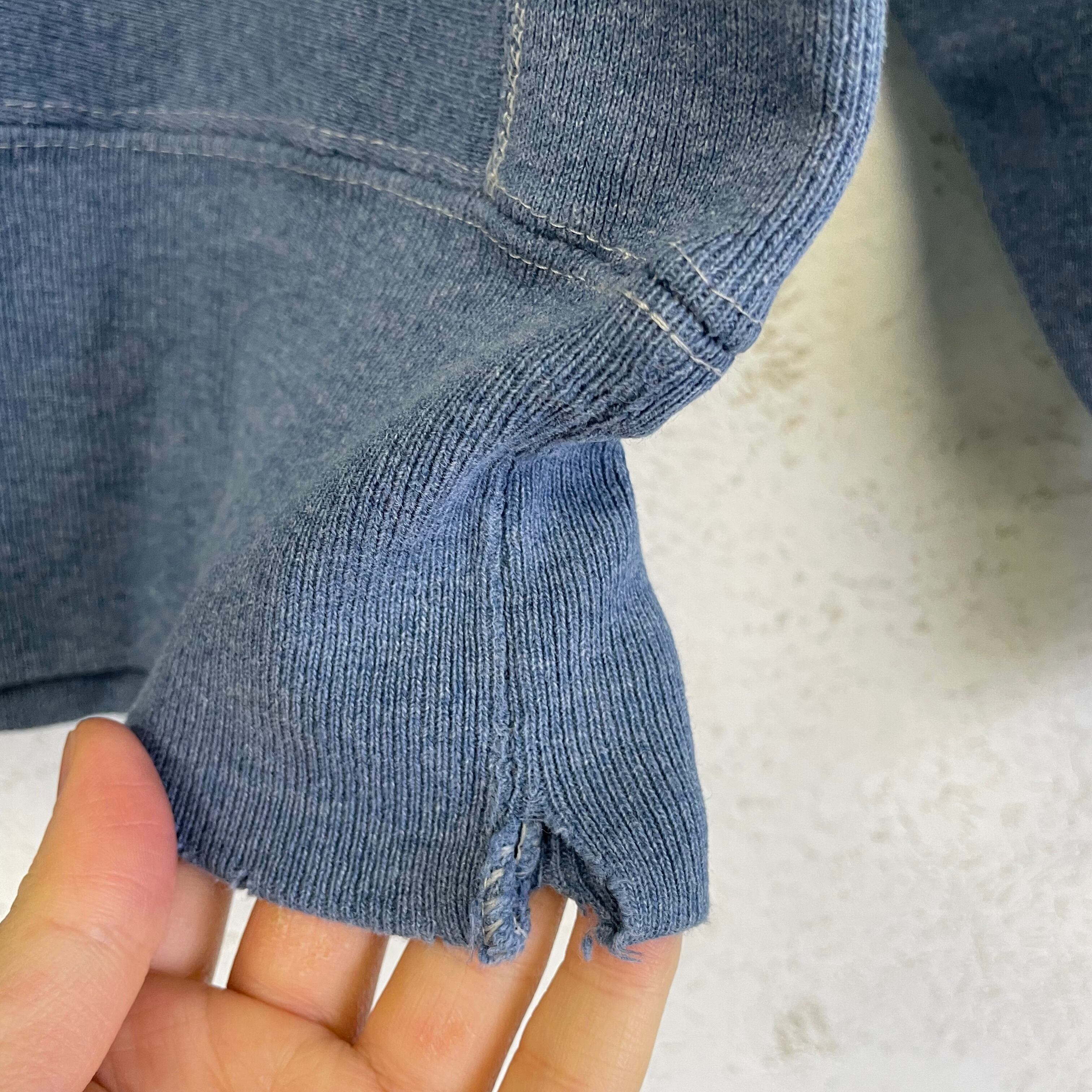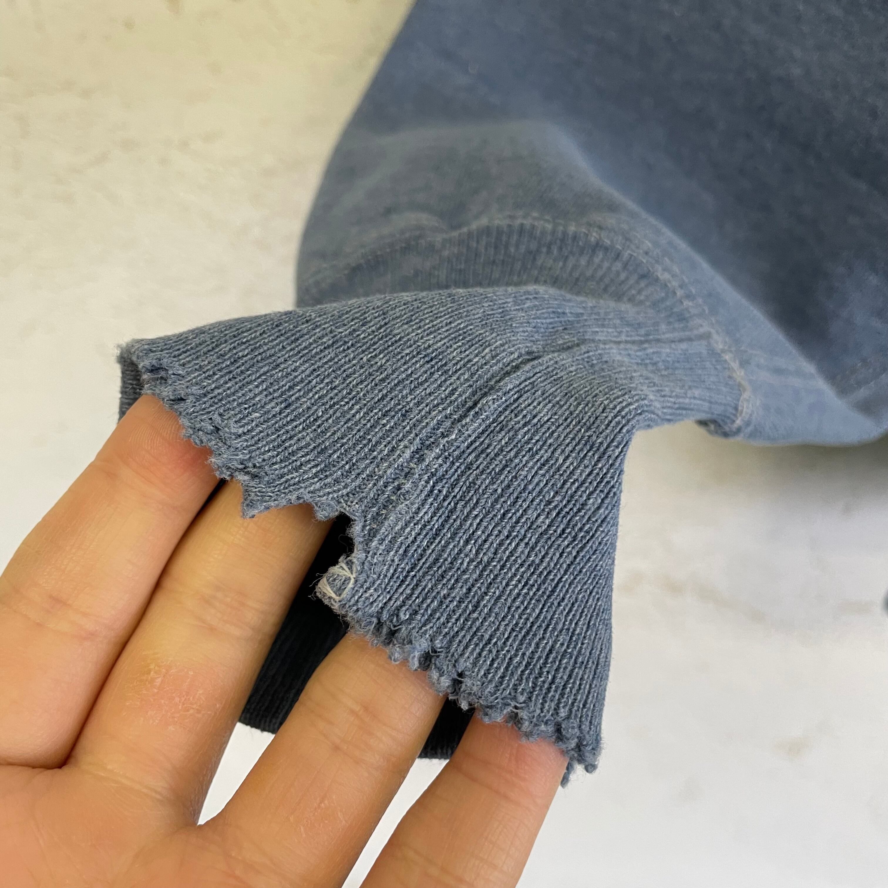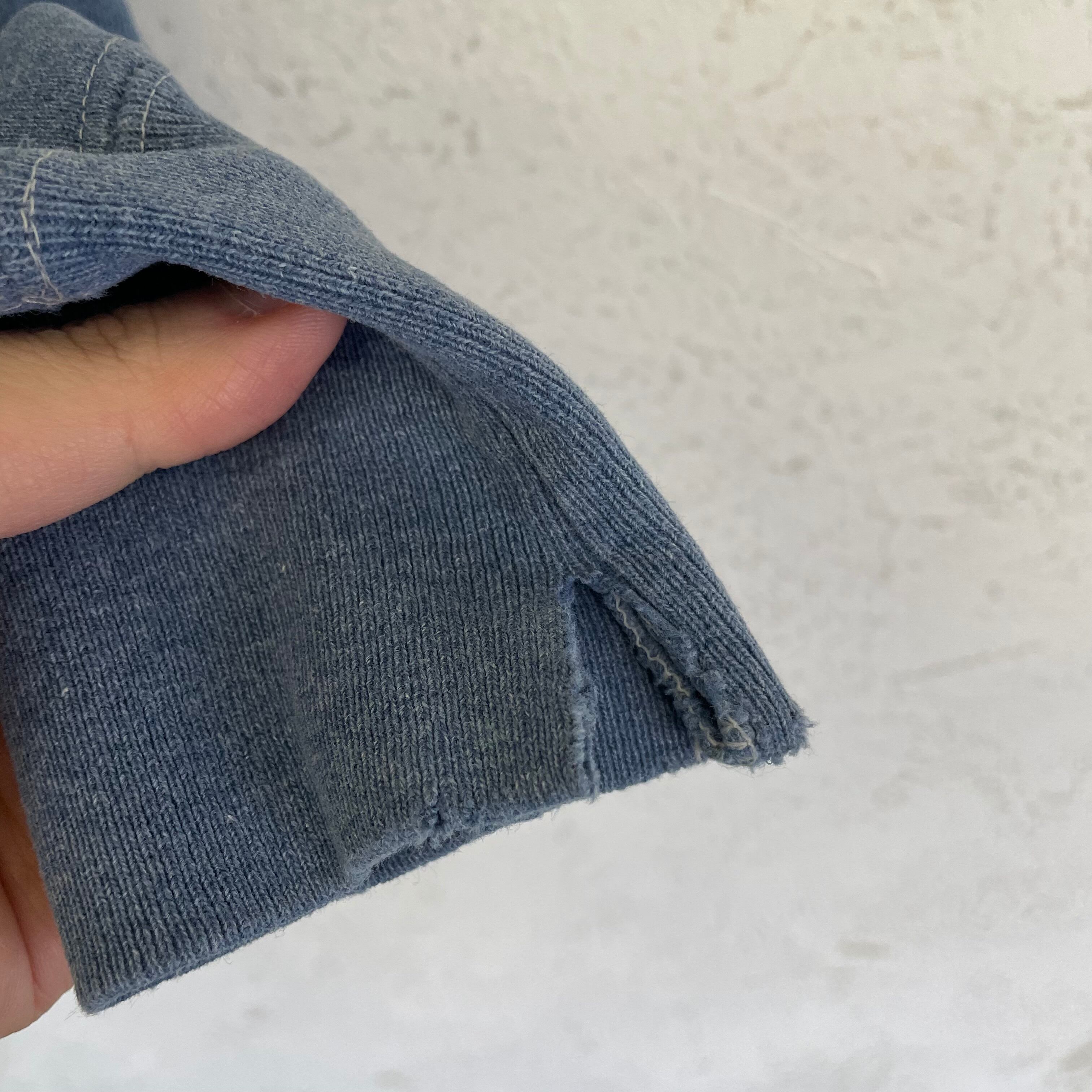 首リブ、両袖口リブ、右袖、裾リブにダメージがあります。