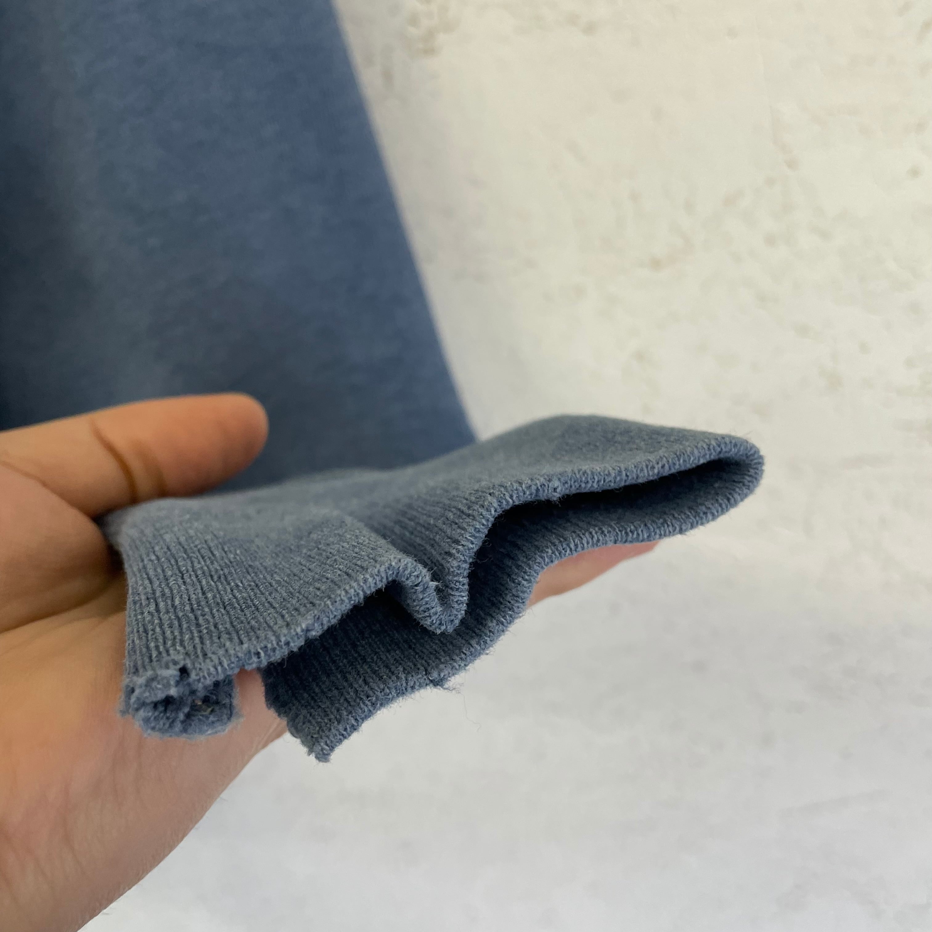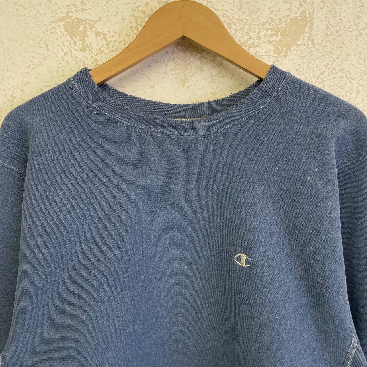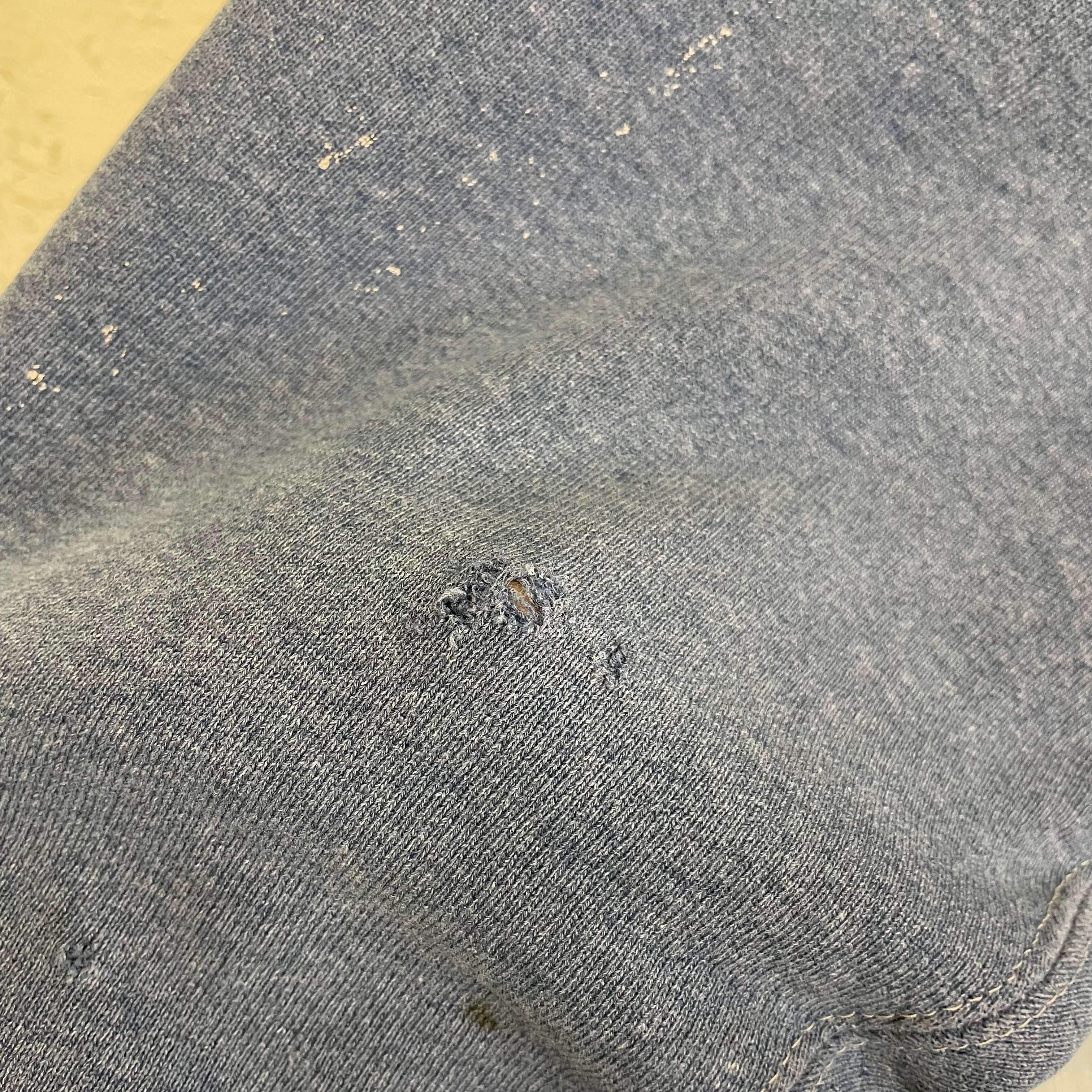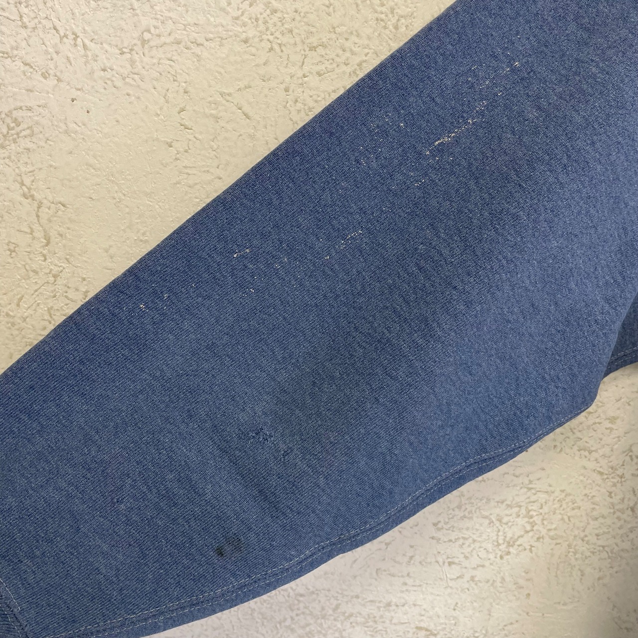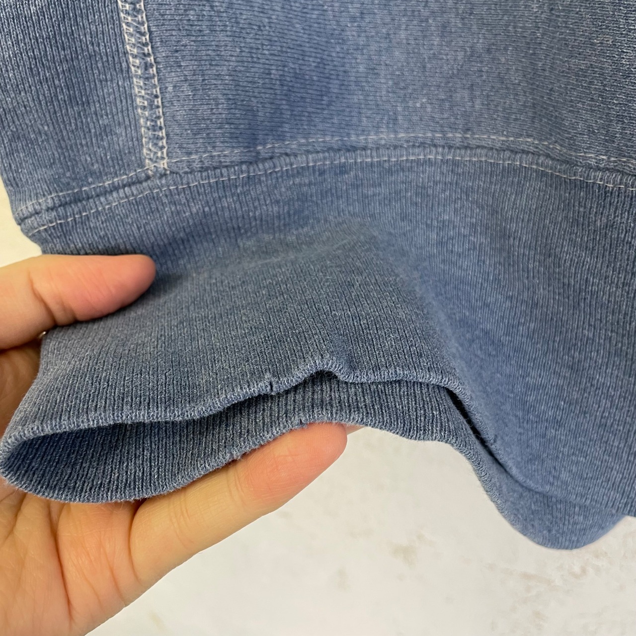 首リブ、両袖口リブ、右袖、裾リブにダメージがあります。