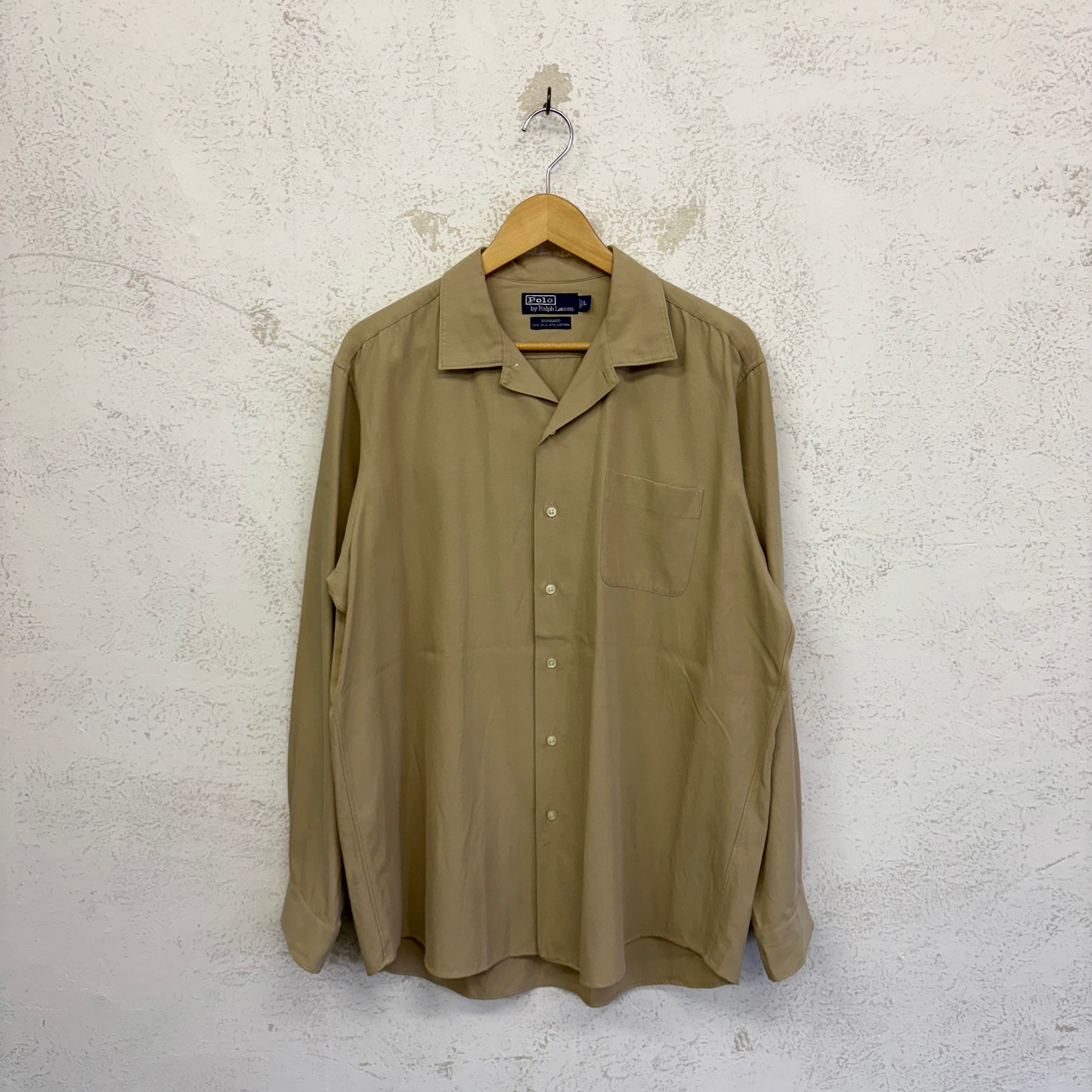 90's Ralph Lauren Loop Collar Shirts cotton silk "BONNARD" size/L ラルフローレン 開襟シャツ コットンシルク ボナード