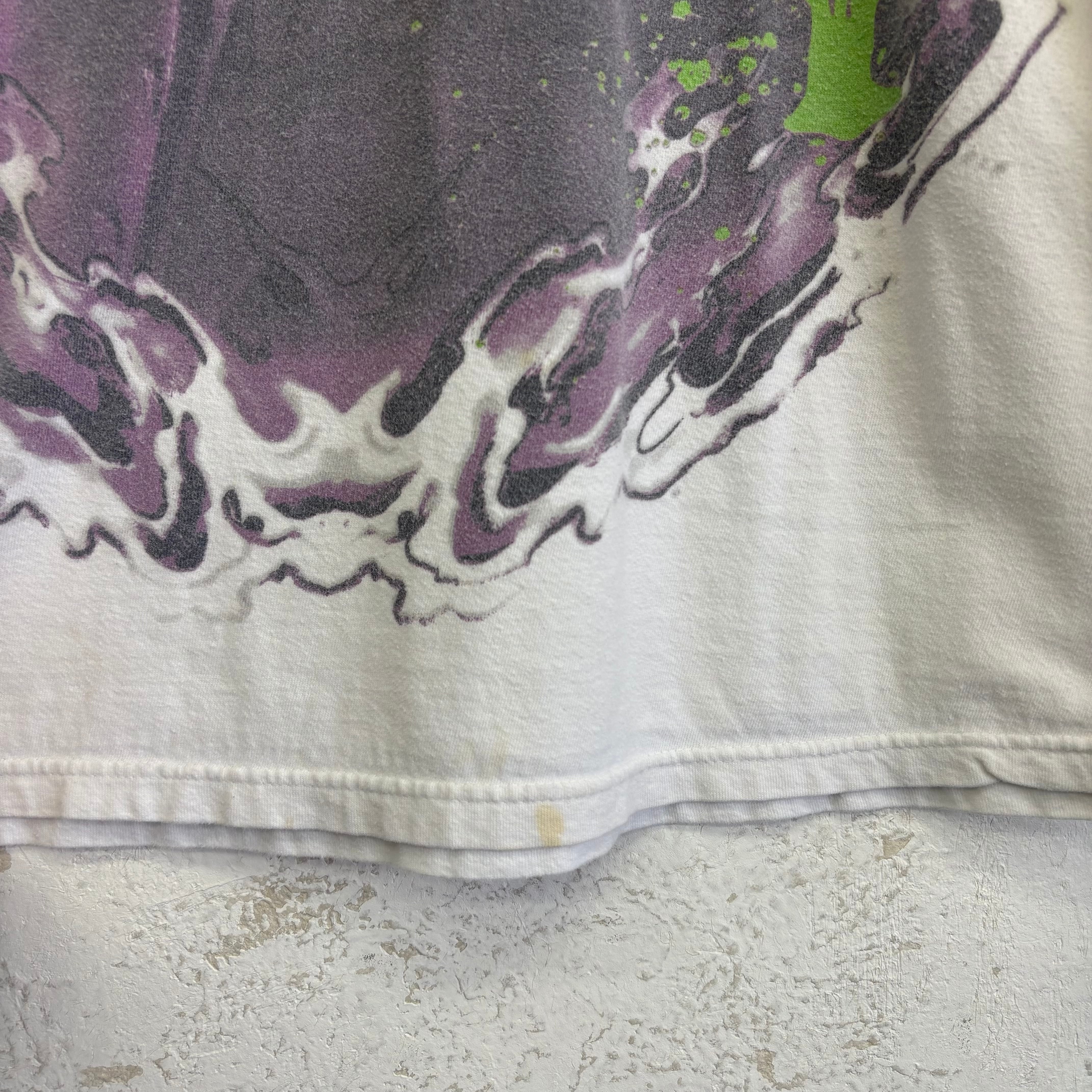 前身ごろ右裾付近、中央裾付近、プリント下部に汚れがあります。(画像7枚目〜9枚目でご確認ください)