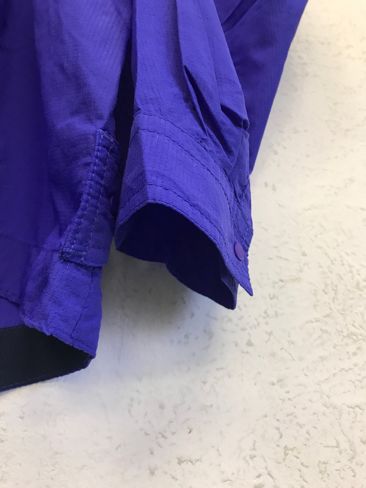 襟の形、背面ポケット、リップストップナイロンと面白いデザインのシャツです。