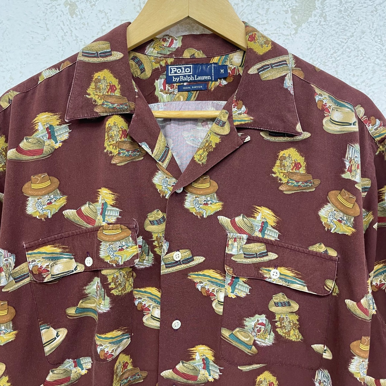 ラルフローレンの開襟シャツの中でもあまり見かける機会の少ないストローハット柄です!