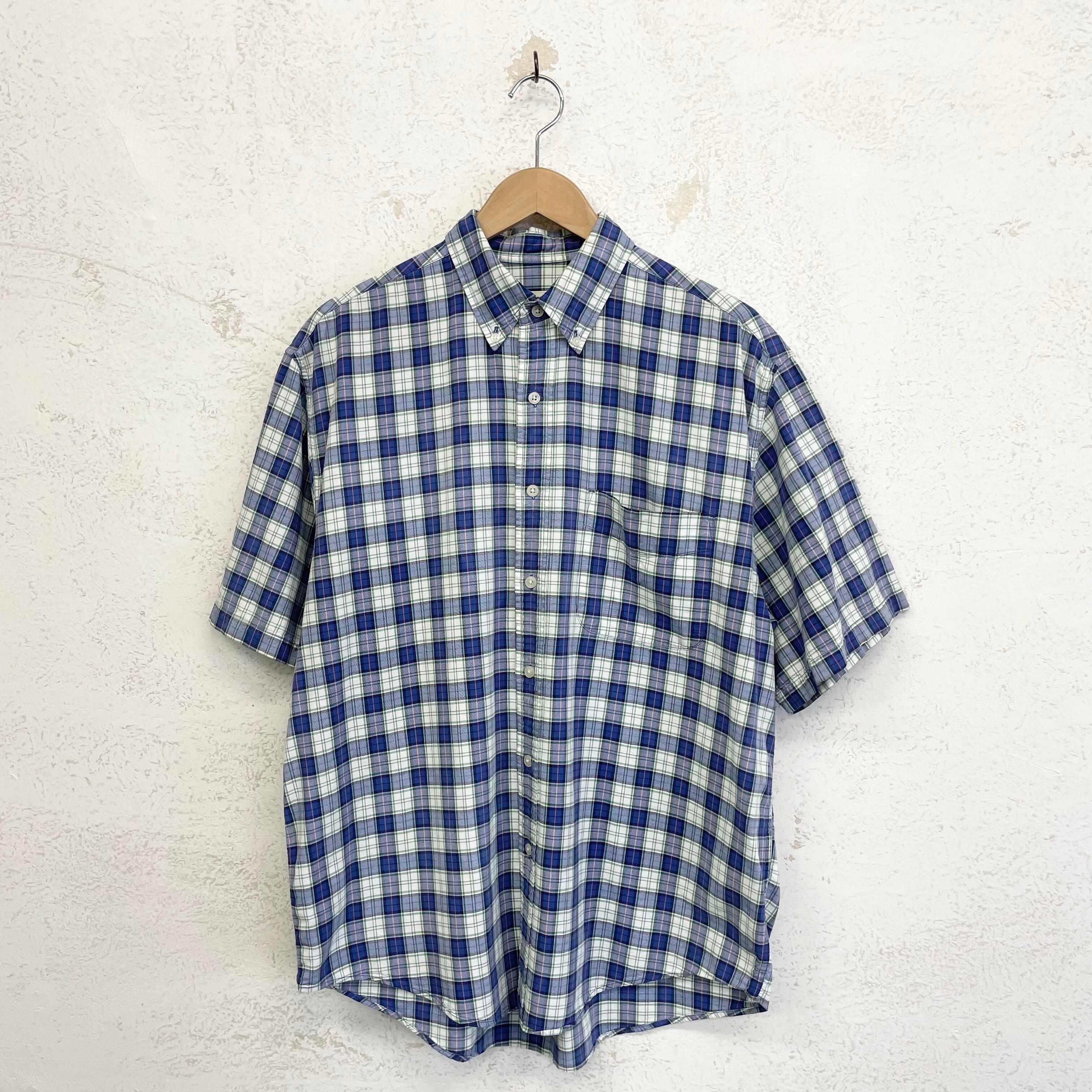 爽やかなブルーチェックの半袖シャツ。