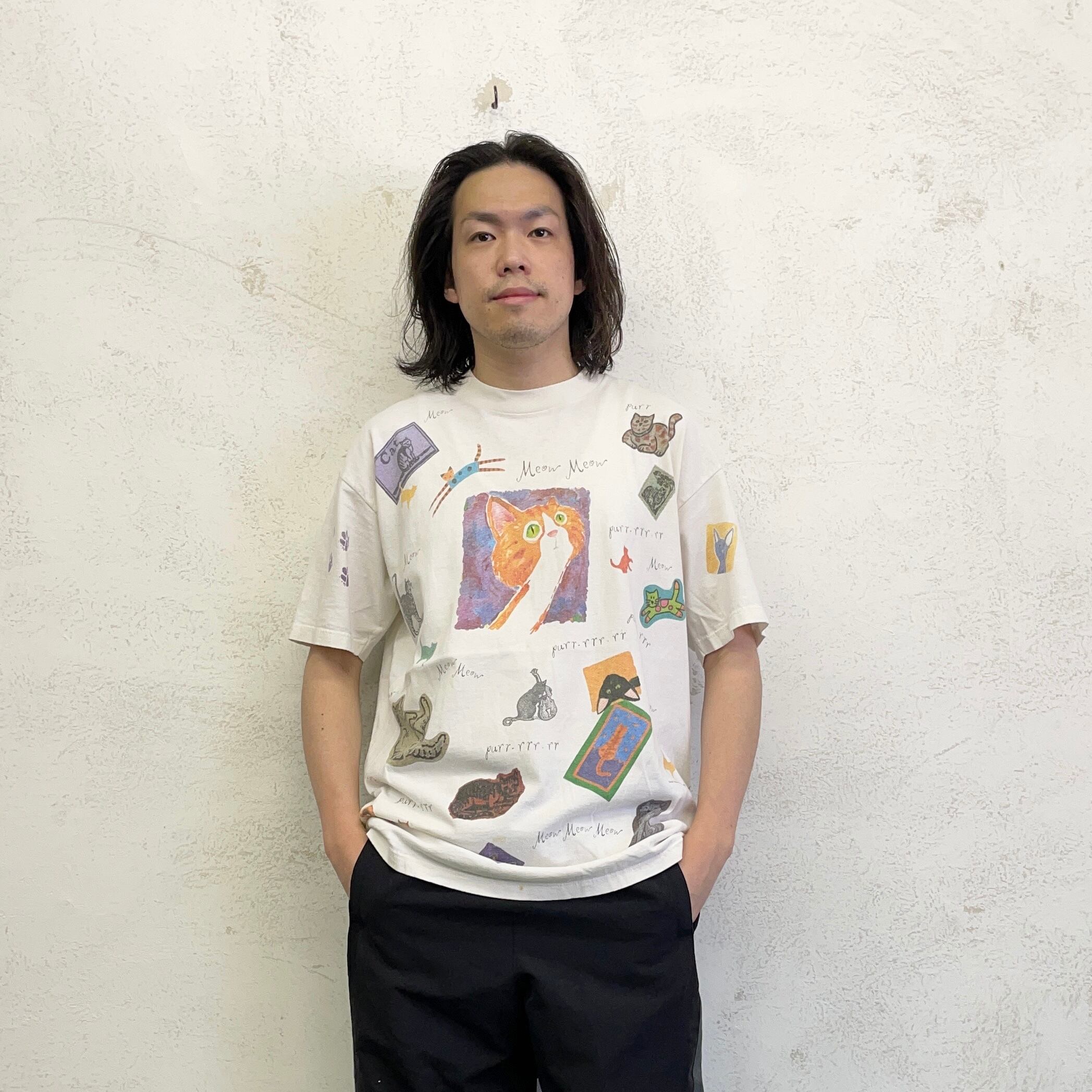 90's rel-e-vant products art T made in USA size/L アートT 猫T アメリカ製