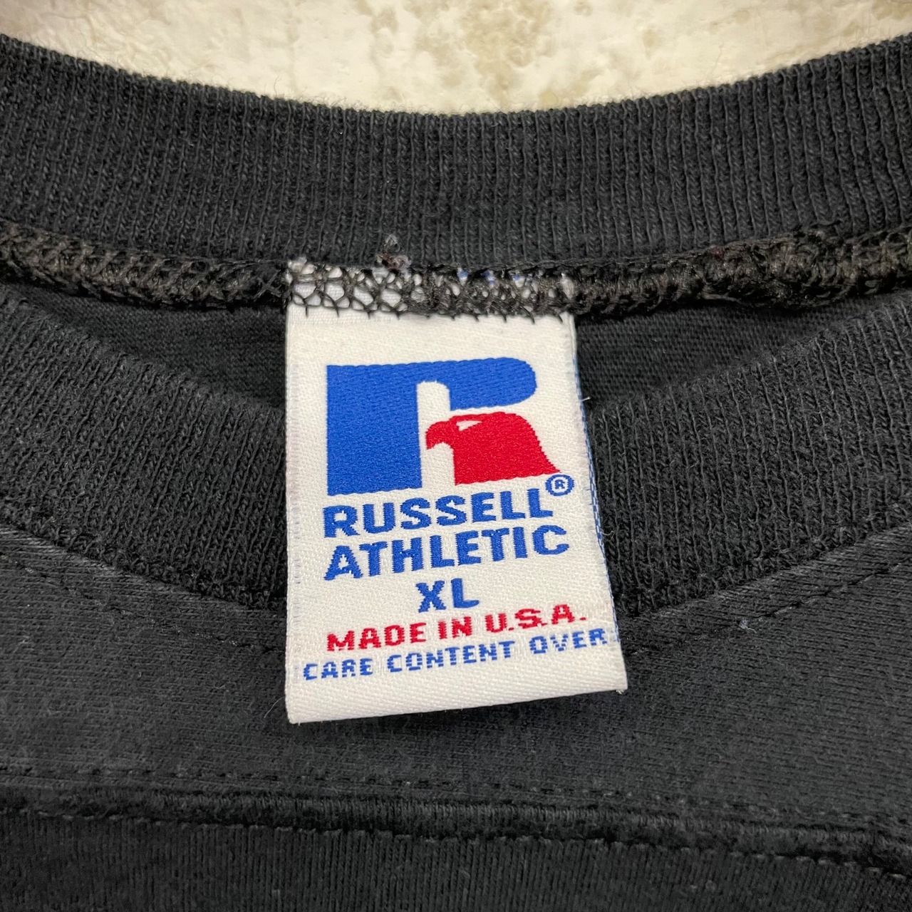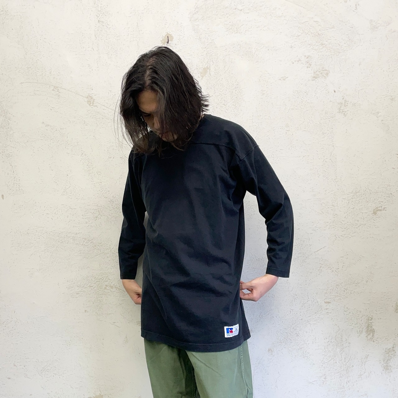 -90's RUSSELL ATHLETIC Football Shirts "BLACK" made in USA size/XL ラッセルアスレチック フットボールT アメリカ製 ブラック