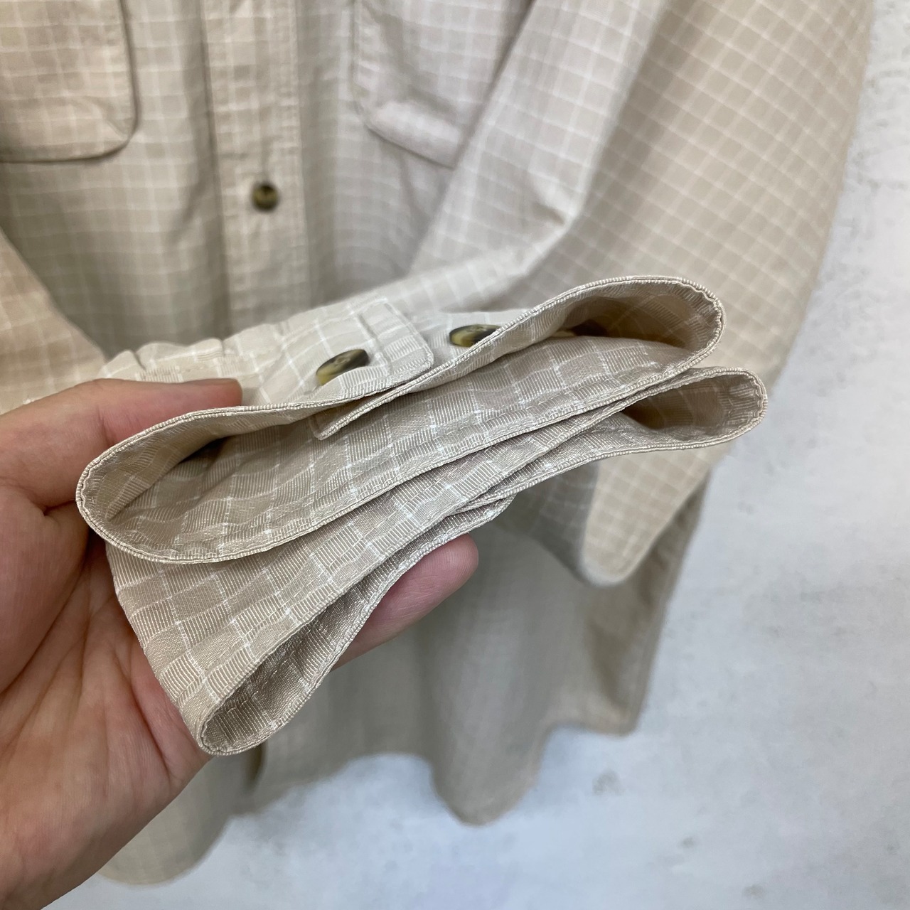 袖を捲って止めると半袖としても着用可能に。