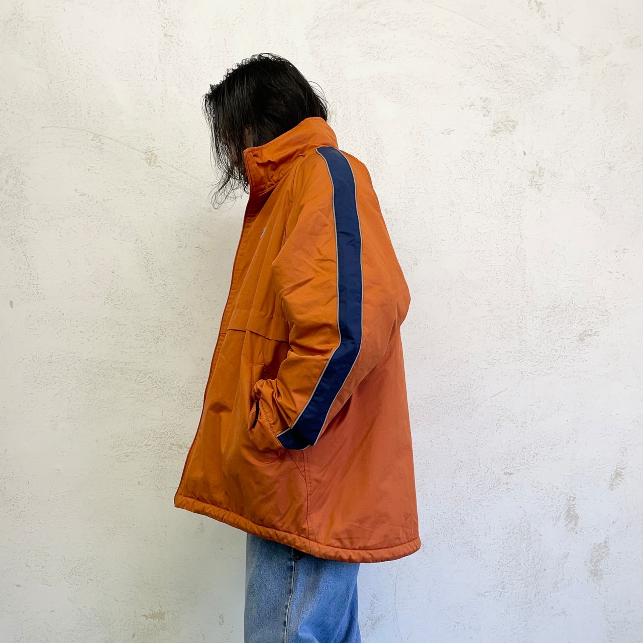 表地コットンポリエステル、裏地フリース素材を使った1着。