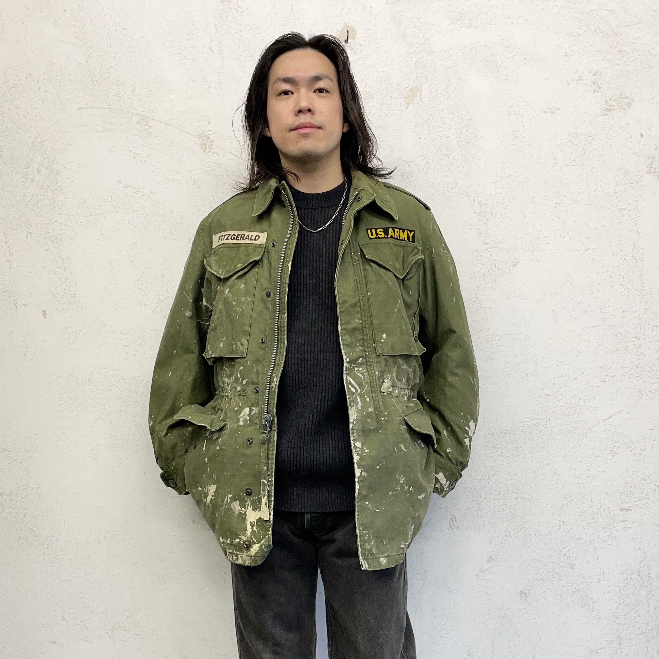 ペンキ飛びやリペアで仕上がったアート的なフィールドジャケット。