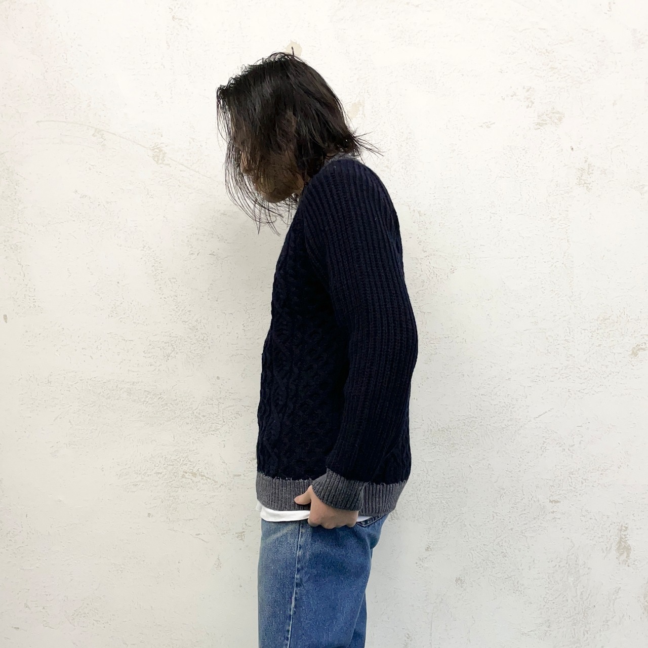 編み方にもさまざまな種類があるので、古着らしい1点モノ感のあるニット。