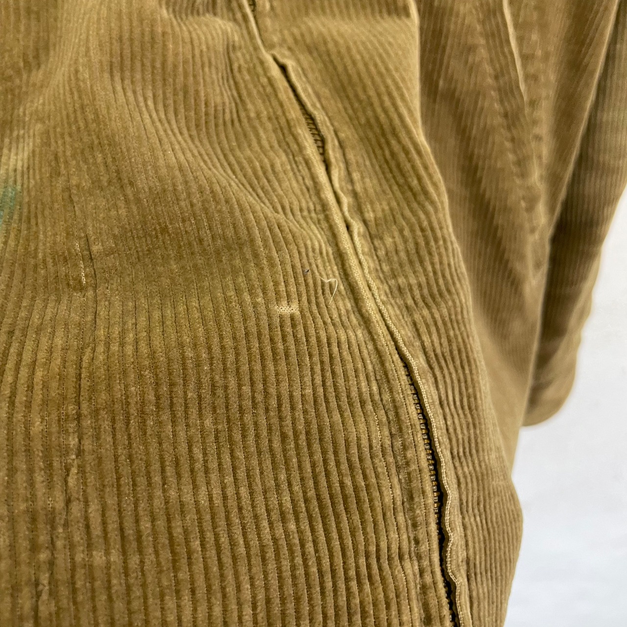 前身ごろ右ポケット辺り、左袖に小さな汚れがあります。