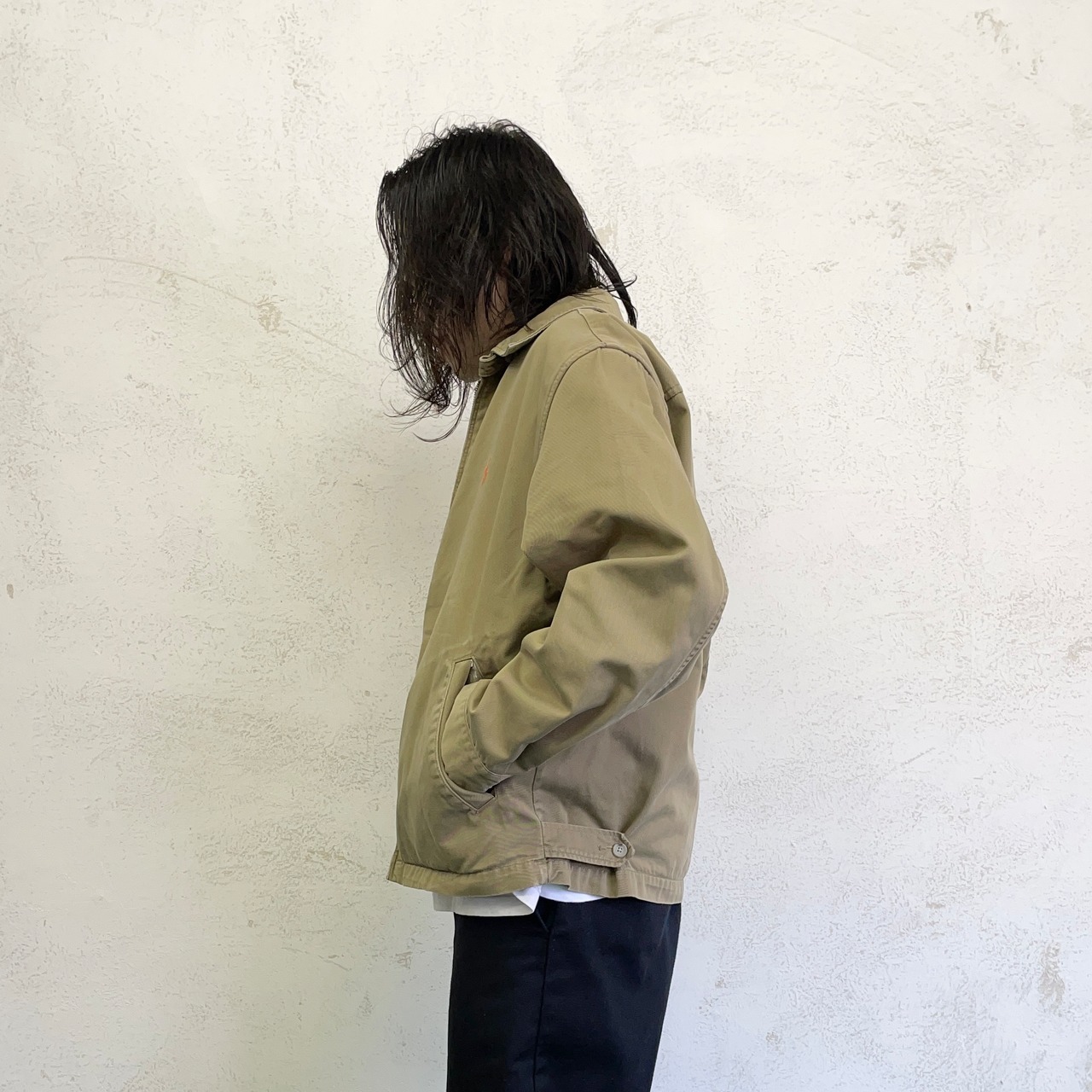 両袖口にダメージ、前身ごろポケット部分にあたりが出て白っぽくなっております。(画像12枚目、13枚目でご確認ください)