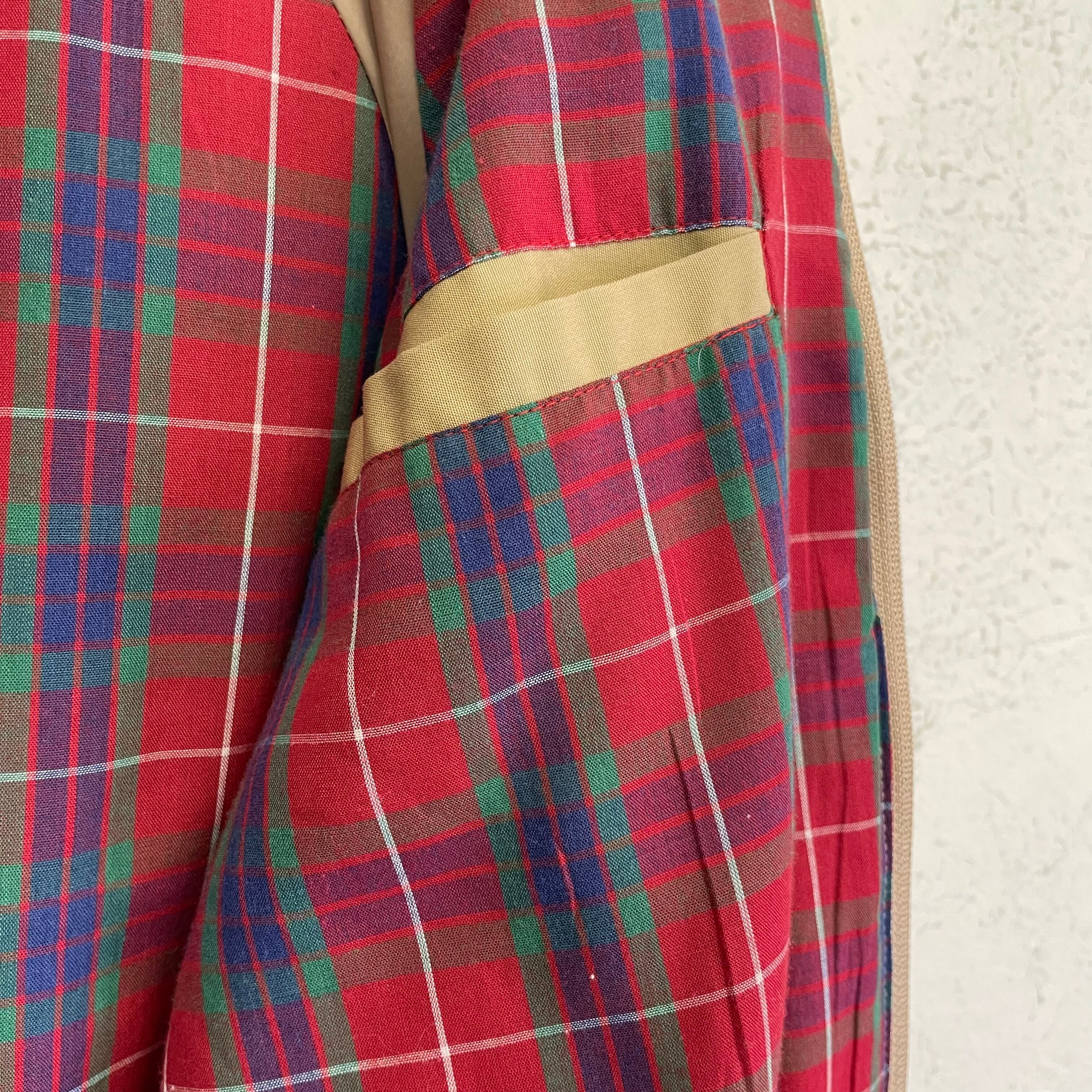 裏地の赤のタータンチェックが特徴的な1着。