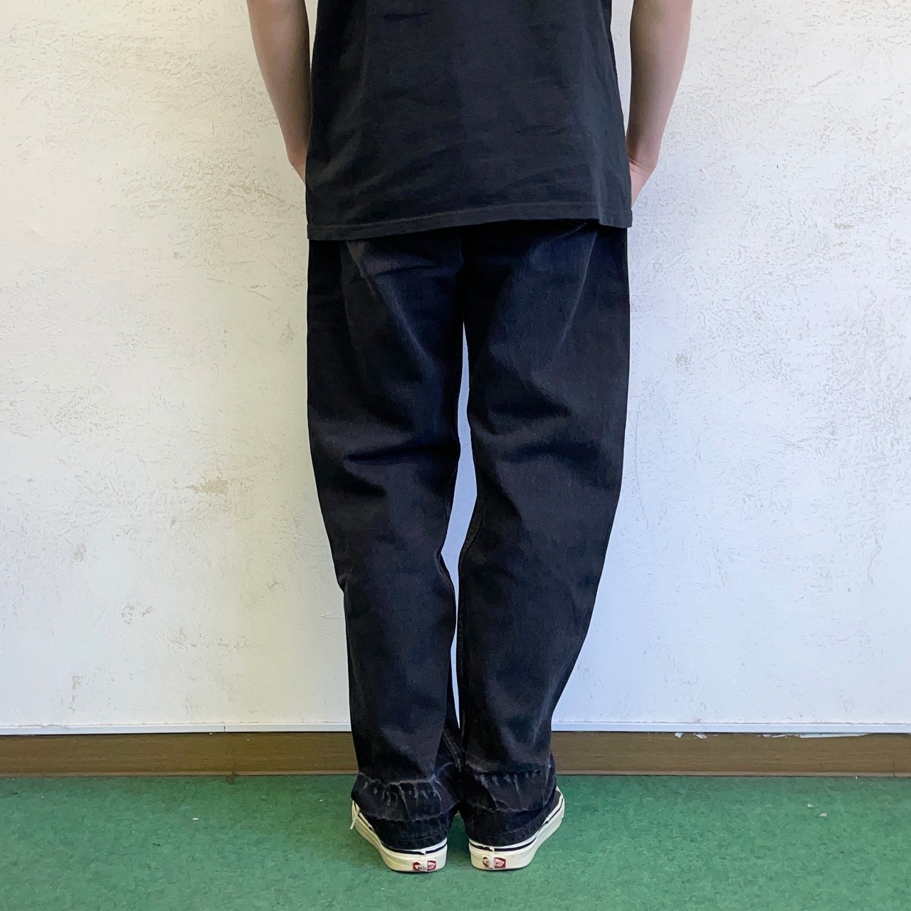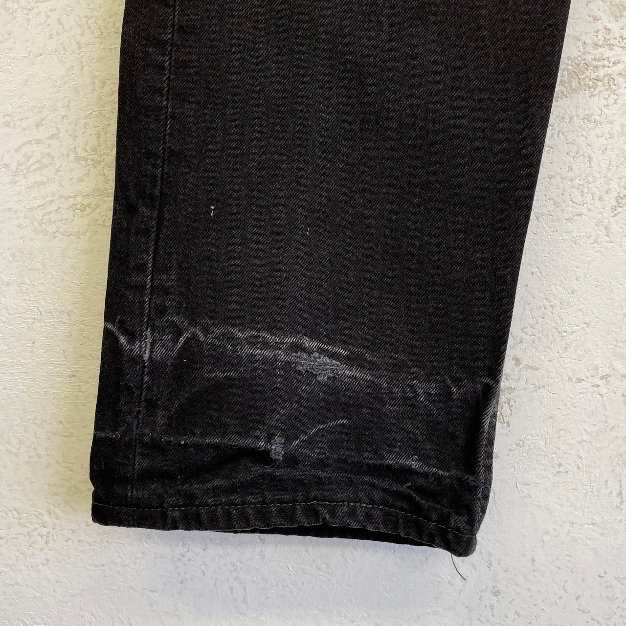 前の所有者が裾上げされてたステッチを解いた事によるダメージがありますが、逆に唯一無二な1本に仕上がっております。