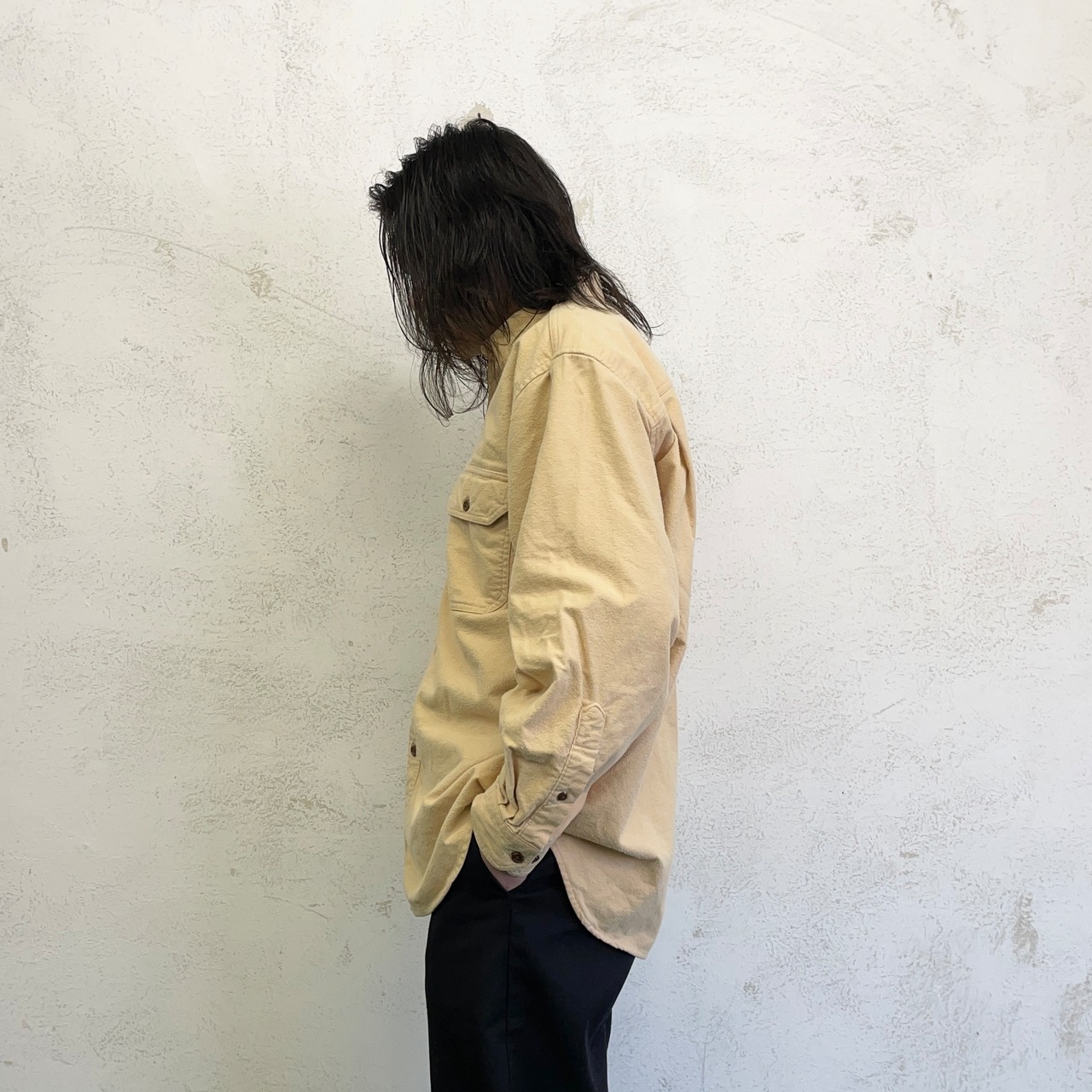 コットンを毳立たせた特徴的な素材のシャモアシャツ。