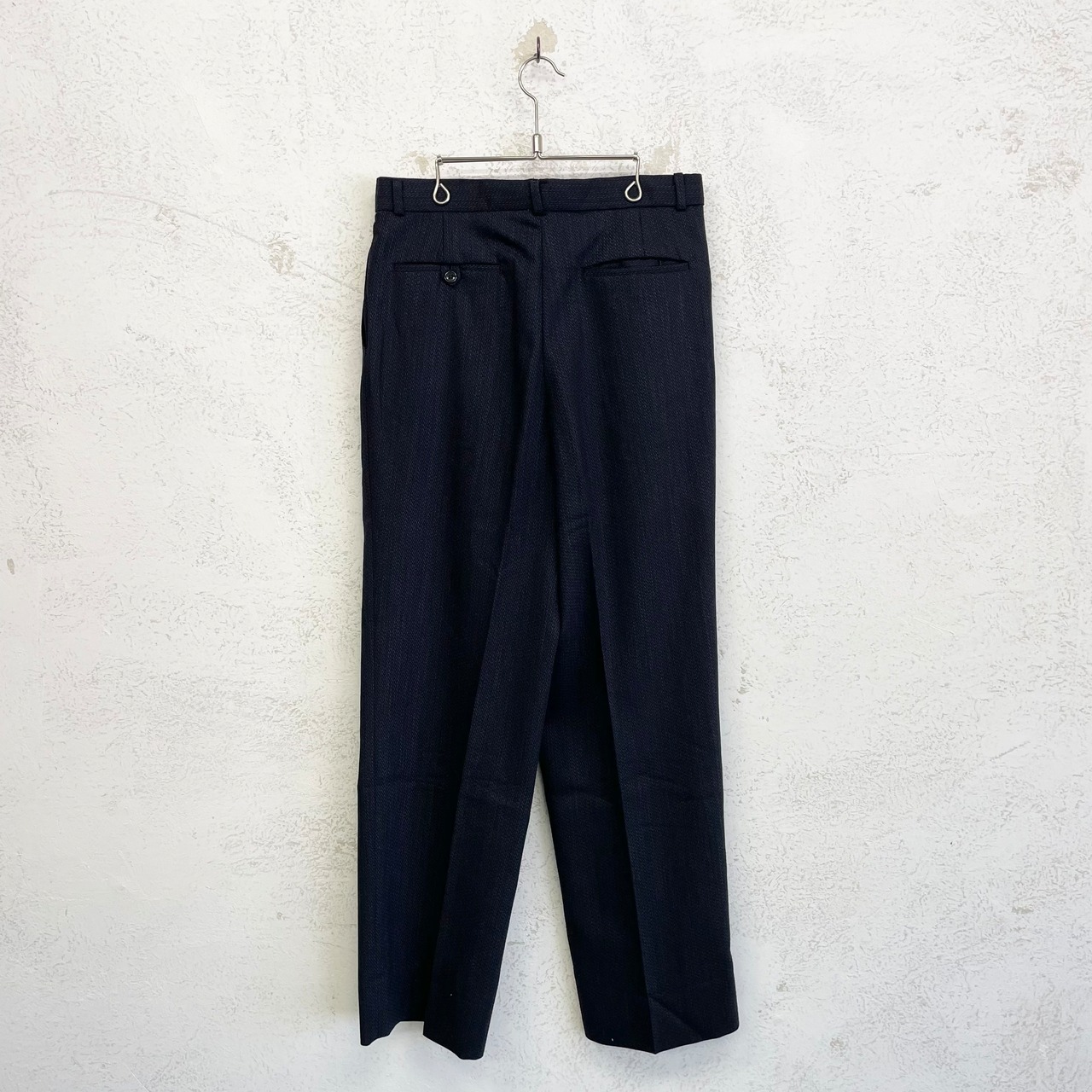 汎用性の高いネイビーのスラックス。