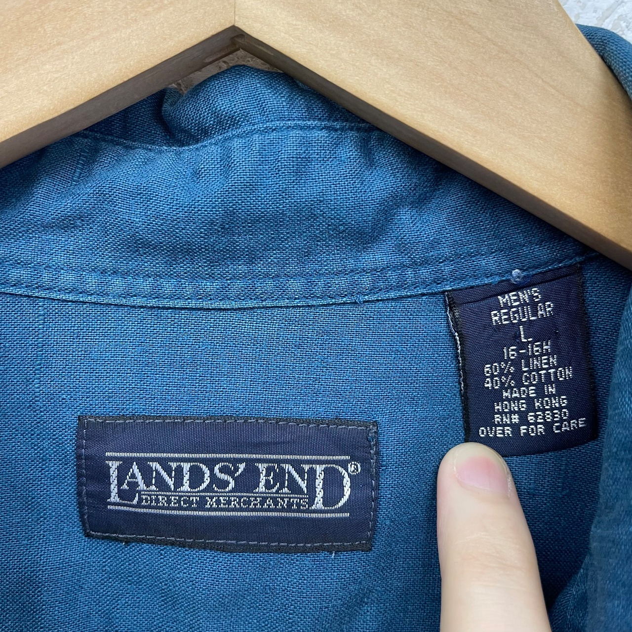 90's LANDS'END linen shirts size/L ランズエンド 半袖 リネンシャツ
